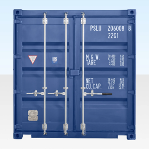 Standard 20ft containers for sale deliver precise dimensions: external 20′ L x 8′ W x 8’6″ H; internal 19’4″ L x 7’9″ W x 7’10” H, with 1,172 cu ft capacity and 52,910 lb max gross weight. Doors measure 7’8″ W x 7’6″ H, fitting euro-pallets side-by-side.